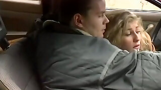 Beautiful classic huge-titted blondie in the car gives head to her stud