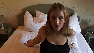 junge blondine freut sich auf das audition und faengt direkt an sich zu fingern