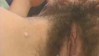 teasing fingering and masturbate hairy creamy dripping raw pussy close up with slime and sploog orgasm
